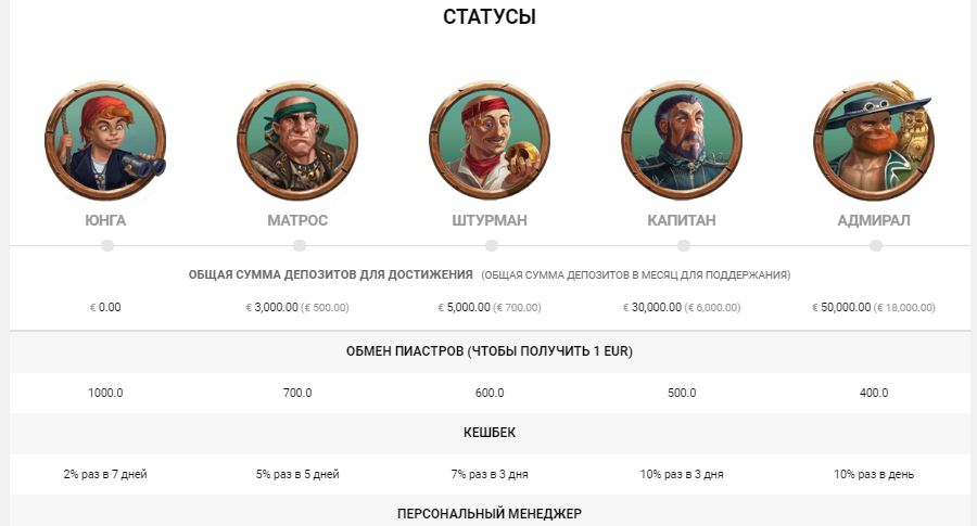 Индивидуальные бонусы выдаются ежемесячно игрокам, которые продвигаются по статусной лестнице программы лояльности.